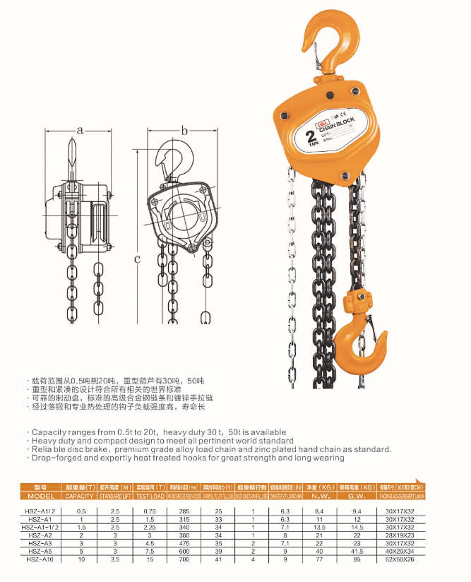 Reliable brake disc,premium grade alloy load chain and zinc plated hand chain as standard