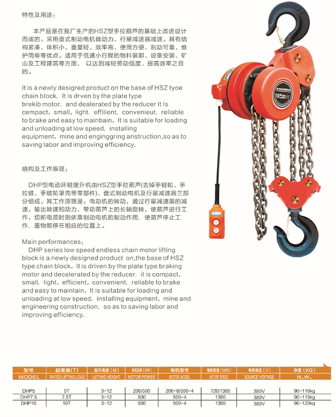 DHP SERIES LOW SPEED ENDLESS CHAIN ELECTRIC HOIST