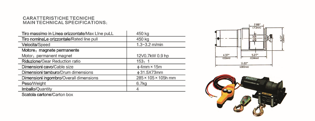 12V ELECTRIC WINCH-DIRECT CURRENT D&L209